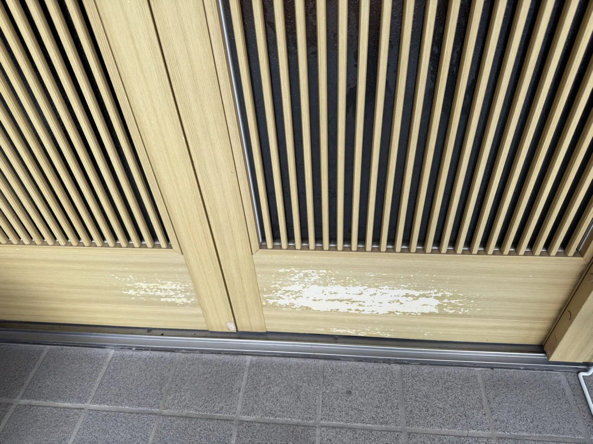 一見すると「汚れているだけ」に見える玄関まわりですが、