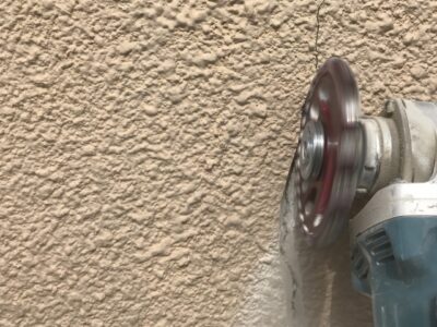 塗装前に下地調整と補修を行う重要作業の下地処理。塗ると見えなくなりますが、美観、後の剥がれ防止、ひび割れ補修など、『塗るだけ』ではなく手間暇かけた丁寧な下地処理があってこそ最高の塗装になるのです。