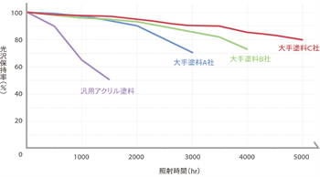 同じシリコン樹脂でも耐久性の高いものから低いものまでピンからキリまであるのです。仮に大手塗料A社の塗料で住宅1棟100万円だった場合、大手塗料C社の塗料は3倍の300万円になるわけではありません。実際の差は数万円程度だけなのです。